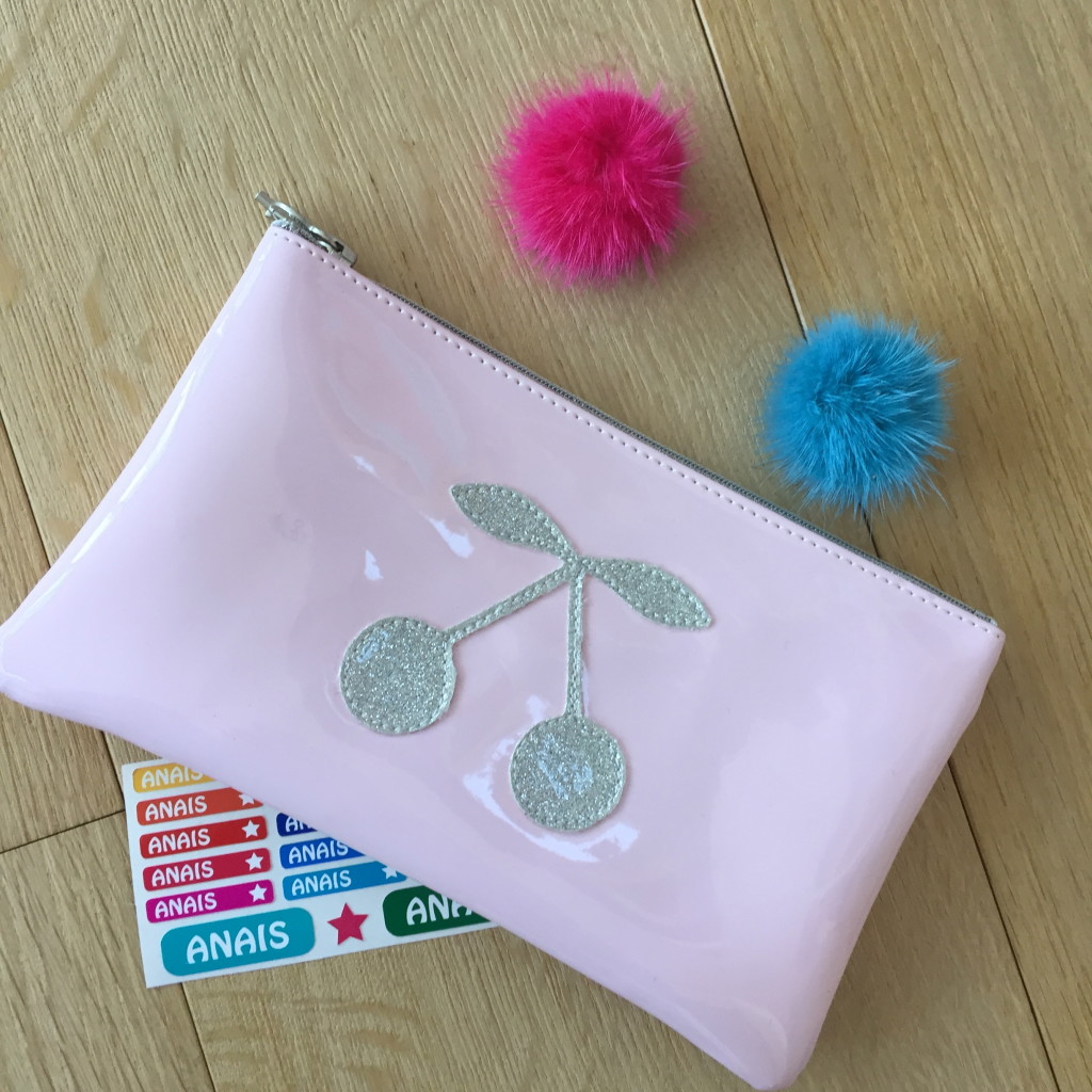 Trousse rose pâle – Cerises argentées